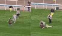 Horse racing protestor runs onto track in £4.1m race in terrifying scenes | Racing | Sport